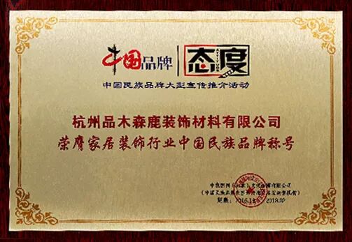 此外森鹿品牌还先后荣获中国知名品牌、浙江名牌产品、浙江省著名商标、中国环境标志认证产品、AAA级全国质量信用企业、全国建筑装饰推广应用产品、全国木地板30家市场放心品牌、全国建筑装饰装修材料优质品牌等荣誉称号。
