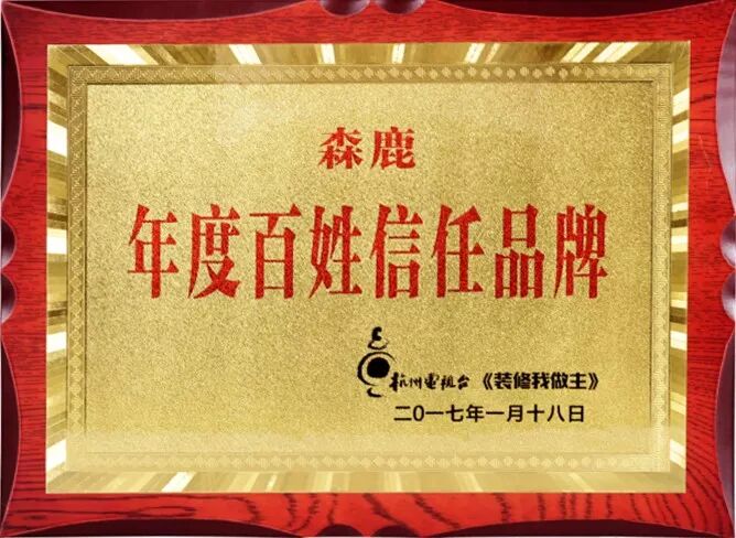 2017年1月森鹿品牌荣获“年度百姓信任品牌”。