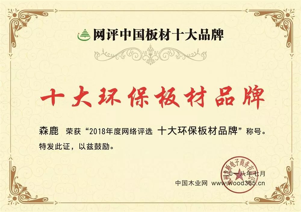 2015年3月,森鹿品牌参加由中国木业网举办的“中国板材十大品牌”网络评选活动,并成功荣获“胶合板十大品牌”以及“生态板十大品牌”两项荣誉称号!