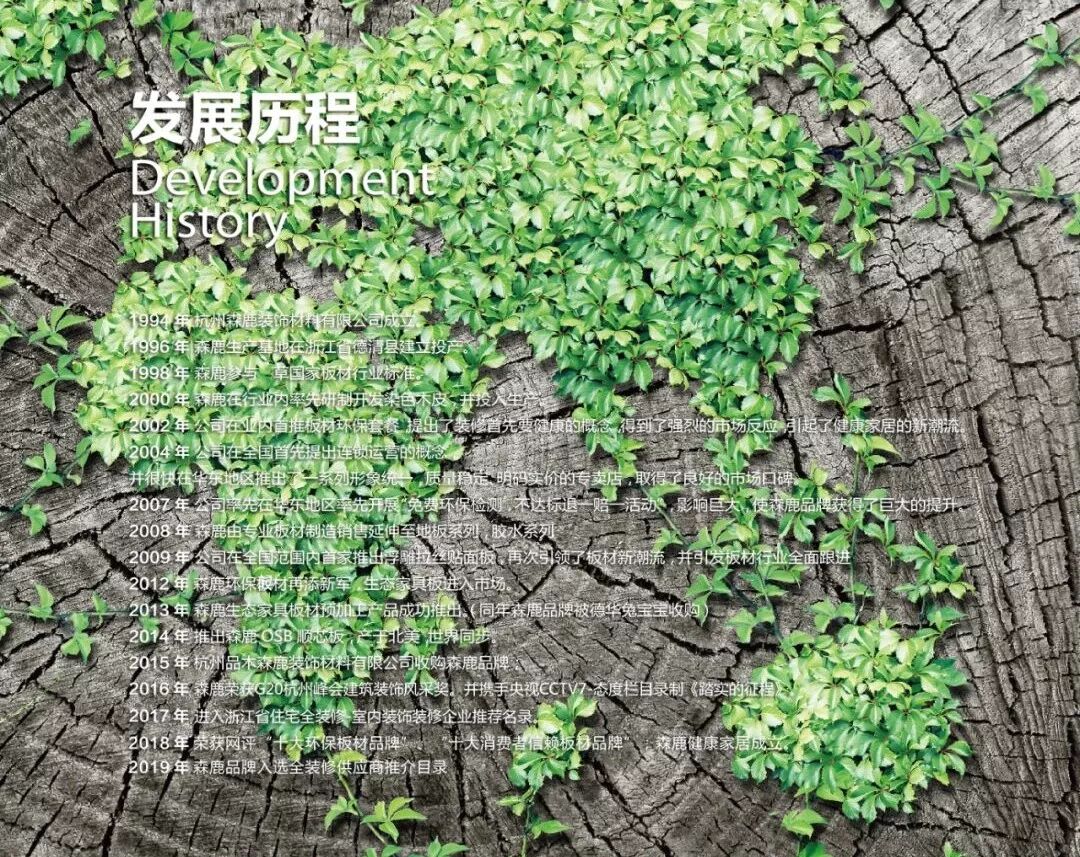 杭州品木森鹿装饰材料有限公司是一家以生产经营装饰板材、地板、木门、衣柜、橱柜、护墙板等木制品为主的现代企业,始于1994年,总部设在杭州。其前身是杭州森鹿装饰材料有限公司,是中国知名的民营企业。森鹿品牌的专卖店辐射了华东地区乃至全国,为千家万户提供环保,时尚的产品。