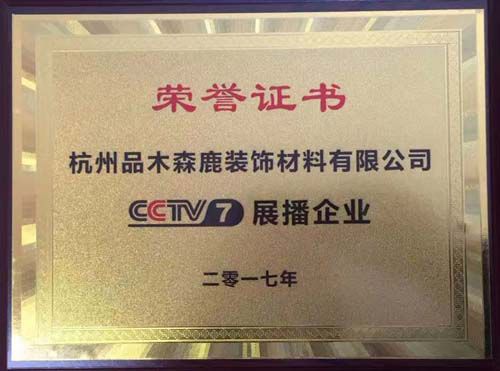 2017年森鹿成为“CCTV7的展播企业”,并且荣获“家居装饰行业中国民族品牌”称号。