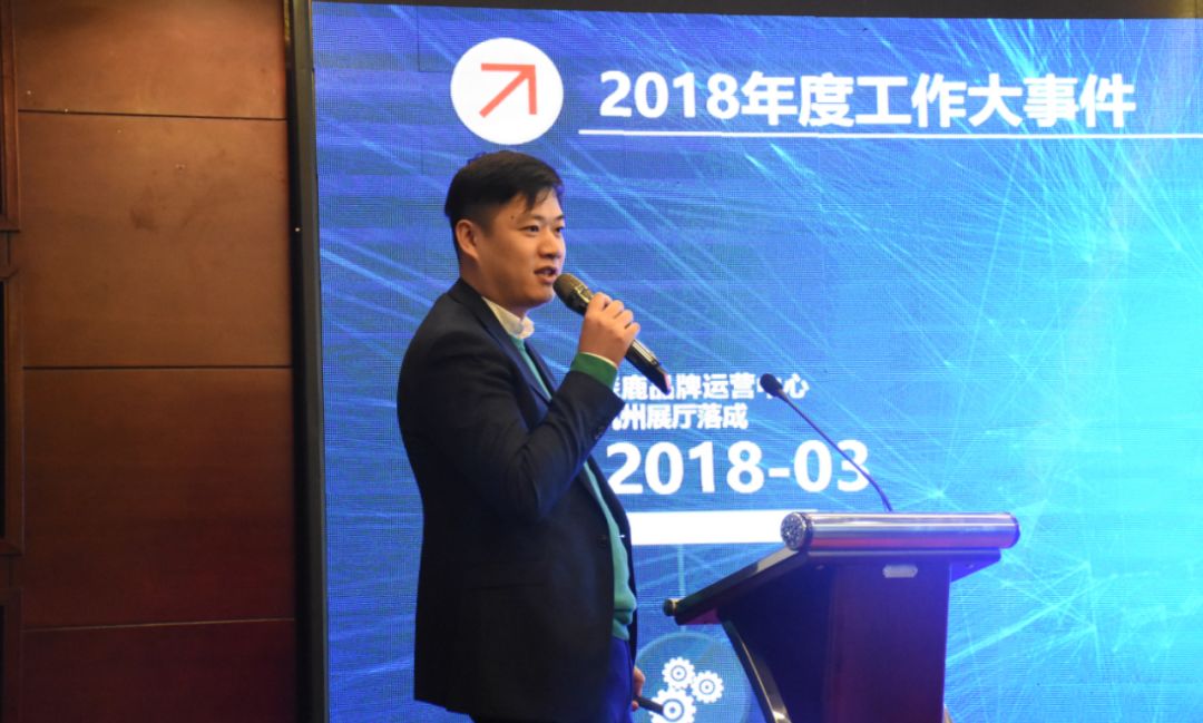 会上杭州品木森鹿装饰材料有限公司总经理兼董事长杨品章先生作出森鹿2018年工作总结及2019年战略目标展望。